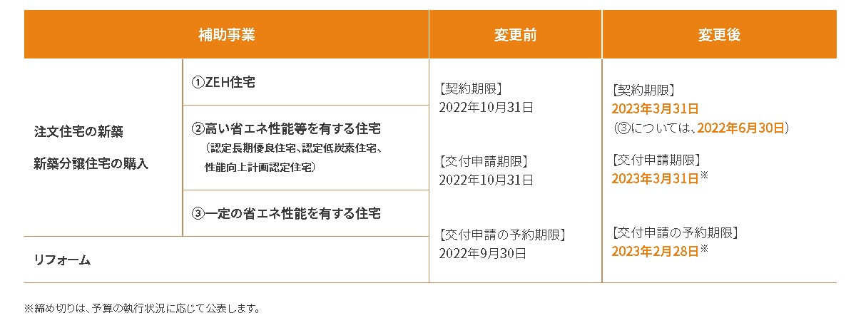 2022/05/06 こどもみらい住宅支援事業 延長決定! 2022年注目の補助金制度「こどもみらい住宅支援事業」ですが契約期限・申請期限の延長が発表されました。 気をつけなくてはいけないのが「一定の省エネ性能を有する住宅」の新築については、2022年6月30日までに契約の締結が必要と一部期限が短くなっているので注意が必要です。 性能が高い家を建てるともらえる補助金なので是非チェックしてみて下さい。 出典:2022こどもみらい住宅支援事務局 この記事を書いた人 五十嵐 勇太の書いた記事 2026.01.17 茅ヶ崎市I様邸で躯体検査・防水検査を行いました 五十嵐 勇太 2025.12.13 茅ヶ崎市I様邸で上棟を行いました|湘南注文住宅現場レポート 五十嵐 勇太 2025.10.31 湘南エリアで建築中|A様邸の気密測定を行いました。 五十嵐 勇太 スタッフブログ最新記事 2026.01.17 茅ヶ崎市I様邸で躯体検査・防水検査を行いました 2025.12.13 茅ヶ崎市I様邸で上棟を行いました|湘南注文住宅現場レポート 2025.10.31 湘南エリアで建築中|A様邸の気密測定を行いました。 2025.09.27 茅ヶ崎市でI様邸地鎮祭を執り行いました! 2025.07.24 平塚で注文住宅を建てたオーナー様邸をルームツアー撮影してきました! アーカイブ 2026年1月 2025年12月 2025年10月 2025年9月 2025年7月 2025年6月 2025年5月 2025年4月 2025年3月 2025年2月 2025年1月 2024年12月 2024年11月 2024年10月 2024年9月 2024年7月 2024年6月 2024年5月 2024年4月 2024年2月 2024年1月 2023年11月 2023年10月 2023年9月 2023年6月 2023年4月 2023年3月 2023年2月 2022年12月 2022年10月 2022年8月 2022年7月 2022年6月 2022年5月 2022年4月 2022年3月 2022年2月 2022年1月 2021年12月 2021年11月 2021年10月