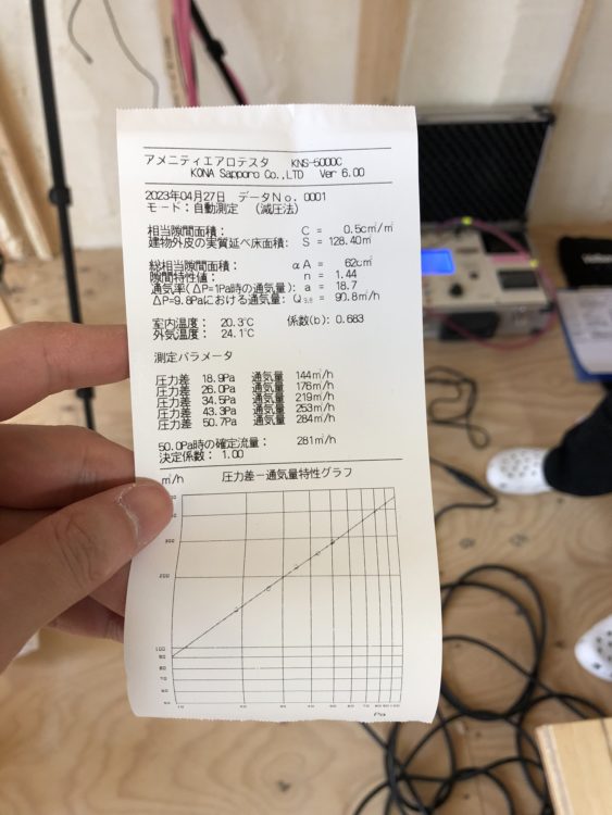 先日、茅ヶ崎市O様邸にて気密測定を行いましたので、