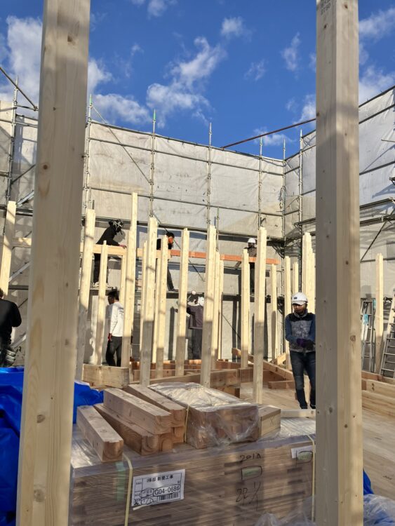 上棟を終えると、図面だけでは分かりにくかった建物のボリューム感などがイメージしやすくなります。