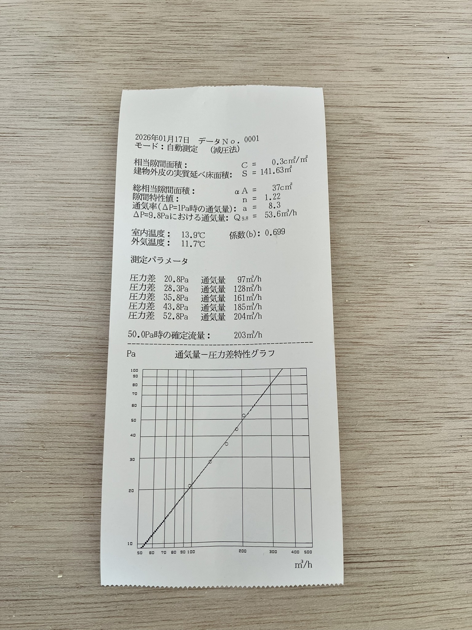 ■気密測定の結果
