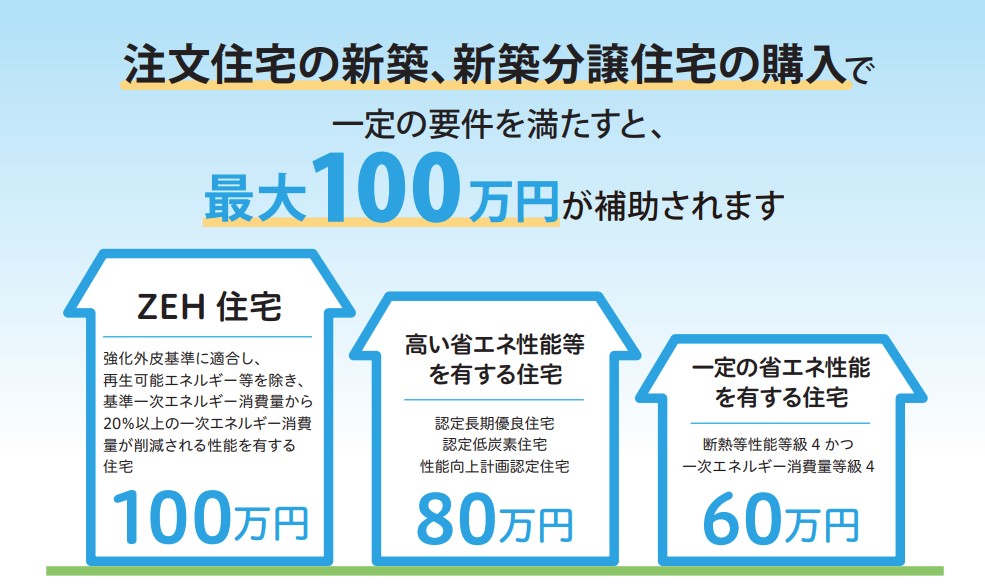 こどもみらい住宅支援がスタートしました。子育て世代、若者夫婦世帯の方は省エネ住宅を建てられると、最大で100万円の補助を国から受け取ることができます。